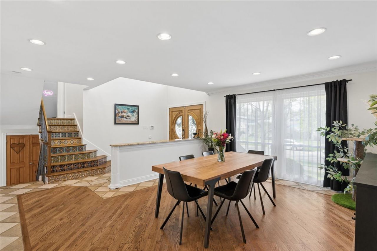 Step inside and feel the space unfold, this is a home that truly keeps going. Designed for both everyday comfort and unforgettable gatherings, this expansive multi-level residence offers room to live, host, and grow with ease. At the heart of the home, a stunning great room invites you to relax or entertain in style, featuring a cozy wood-burning fireplace, an impressive Brazilian granite wraparound countertop, newer and top-of-the-line stainless steel appliances, and not one, but three sinks, perfect for seamless living. Outdoors, the experience continues with a true entertainer's yard: a built-in BBQ, smoker, fire pit, and garden create the ideal backdrop for everything from summer parties to quiet evenings under the stars. Retreat to a sun-filled primary suite complete with its own fireplace and generous space to unwind. The spa-inspired bath offers a jacuzzi tub, separate shower, and double vanities for a luxurious daily routine. With four additional bedrooms plus a dedicated office, there's space for everyone. And just when you think you've seen it all, the home continues, featuring a finished lower level designed for gathering, along with a large game or exercise room ready for your favorite activities. Thoughtful upgrades throughout include a stone patio, newer windows, painted through out, newer appliances (2020-2022), whole home water filtration system (2026), smart home features, new furnace/ac condenser (2025), water heater (2026), and washer(2024) and dryer (2025). All of this in a warm, welcoming neighborhood where pride of ownership shines and located within the highly rated Maine East High School district. A home that offers space, flow, and endless possibilities, perfect for those who love to live large and entertain often. Come fall in love.
