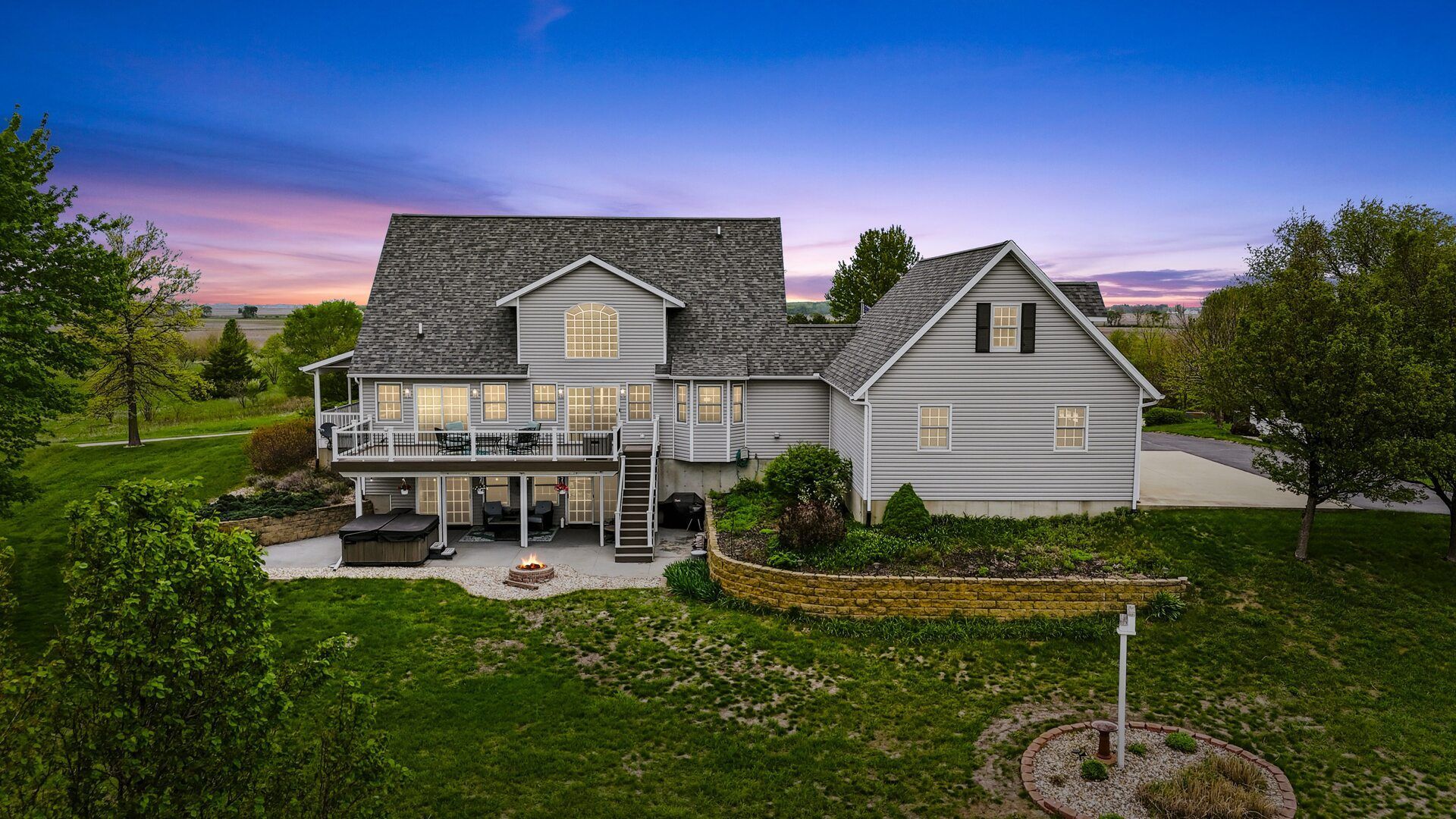 Set on nearly an acre, this exceptional home overlooks the 11th tee of Deer Valley Golf Course-featuring both an 18-hole championship course and a 9-hole executive course-offering scenic views and a peaceful setting. The living room showcases an abundance of windows, filling the space with natural light, while the spacious family room in the walkout basement provides the perfect setting for gatherings, entertaining, or simply relaxing. Enjoy picturesque golf course and countryside views from the home, the new composite deck (2023), or the patio below. The kitchen is thoughtfully designed with granite countertops, hickory cabinets, a reverse osmosis system, and new stainless steel appliances (2022). One eating area features window seating with views of the backyard and golf course. Convenience meets comfort with a large main-floor primary bedroom, complete with a newly renovated en-suite bath (2021), along with main-floor laundry for easy living. The walkout basement adds approximately 1,260 square feet of additional living space, including a generous family room with a 2nd fireplace and patio access to a hot tub that stays! This level also features a kitchenette, space for a game room, a full bath, and ample storage. Extensive exterior updates include a new roof (2020), resealed driveway (2025), new landscaping (2024), 3 new exterior sliding glass doors (2021), and a new garage door and opener (2026).
