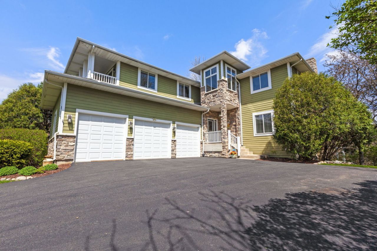 Architectural Excellence awaits at 980 Dakota Drive in Woodstock! This inspired masterpiece nestled between rolling countryside and historic downtown charm offers a Premier Location & Lifestyle. Signature Interiors welcome you with a dramatic two story entry and wrap around balcony, 4 bedrooms, 3 full and 2 half baths. The spacious kitchen is designed with sleek granite countertops, center island, custom cabinetry, and substantial pantry. Main-Level design is elevated with natural slate and maple hardwood flooring and executive home office with a private fireplace. The spacious living room is an Entertainer's Dream, with custom built-ins, surround-sound, and wine bar with dedicated refrigerator. Second floor living is accented by a sun drenched vaulted atrium room with beautiful south facing views and spectacular sunsets. The Primary Suite is a sanctuary complete with vaulted ceilings, a private sitting area and balcony with serene vistas of the wooded yard and private pond. The Luxury Bath with Jacuzzi soaking tub, oversized walk-in shower, and dual vanities flows into an Expansive Dressing Room featuring direct, convenient access to the upper-level laundry. A Junior Suite provides a private balcony and bath amenities. Walk-Out Lower Level is finished with a full wet bar and recreation areas leading outdoors to a sprawling patio showcasing a striking three-story stone fireplace. The thoughtfully landscaped 1.12 acres features a 2,200-sq-ft fenced garden with custom pergola, a private pond and mature trees. Car or toy enthusiasts will love the expansive garage equipped with a professional mechanic's lift, accommodating up to 4 vehicles. Recent Updates include New Roof (2021) New Driveway (2023) Furnace, AC and tankless water heater (2025). Located within the Award-Winning D200 School district, Emricson Park (1 Mile) with access to paved nature trails, pickleball, tennis, volleyball, disc golf, and the Woodstock Water Works aquatic center and 5 miles to the Bull Valley Golf Club and Woodstock Country Club. Easy access to the Historic Woodstock Square, Metra, boutique dining, and the world-renowned Woodstock Opera House.